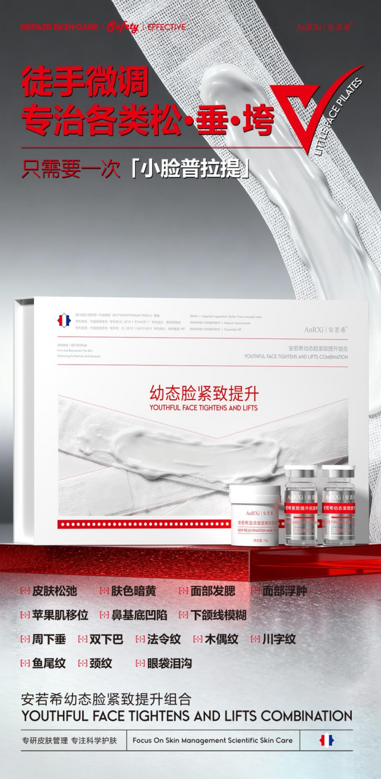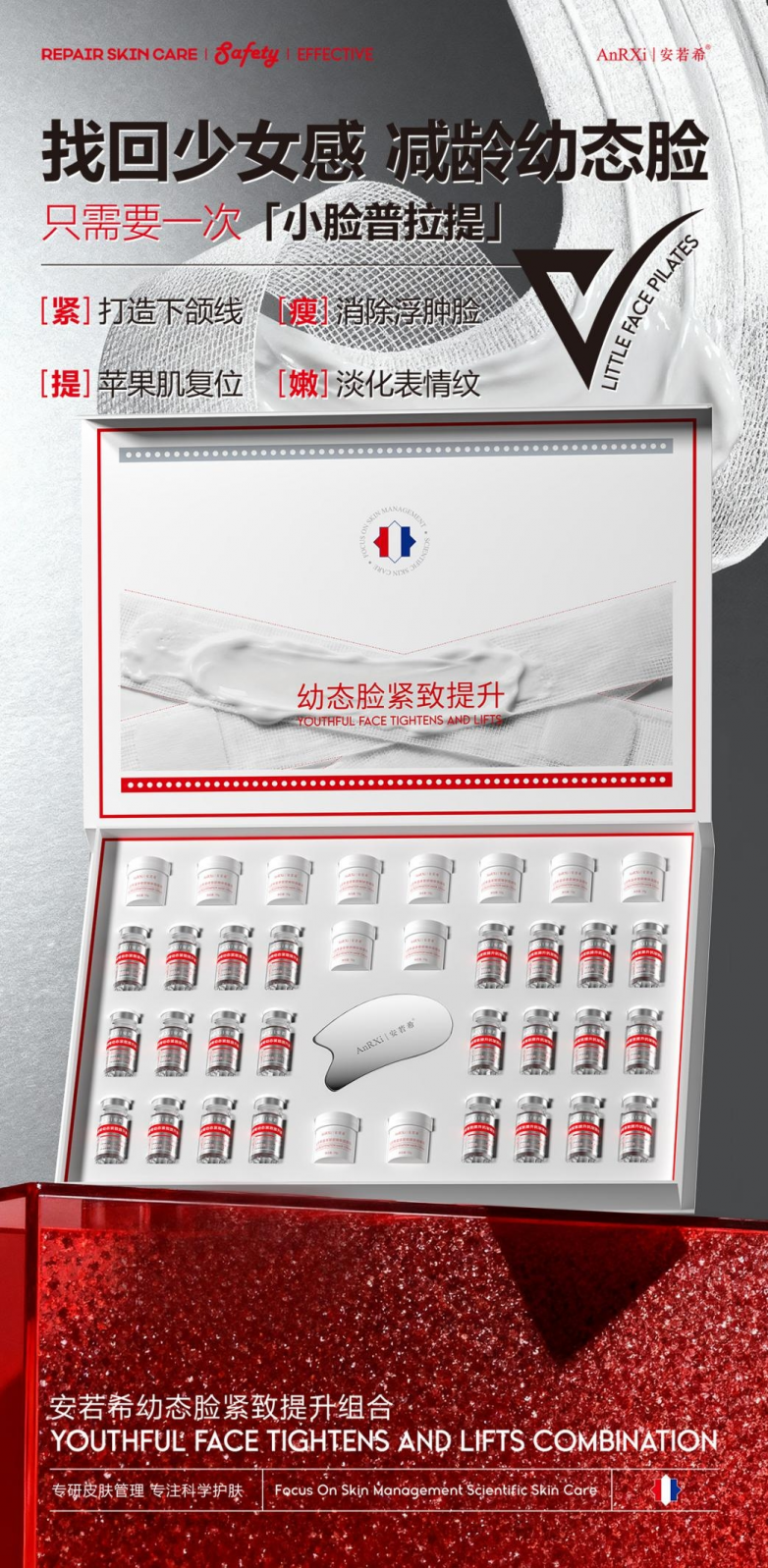 安若希普拉提幼态小V脸项目,是一项针对面部肌肉与皮肤多层结构的非侵入式肌肉抗衰项目。其核心原理在于通过科学的手法与配套产品协同作用,精准作用于额肌、皱眉肌、眼轮匝肌、咬肌、下颌肌等多组面部肌肉群,以及皮肤的7层结构,结合针对性的操作手法,能够有效刺激面部肌肉的收缩与舒张,提升肌肉活力与弹性,改善因肌肉松弛导致的面部下垂问题。同时,产品成分可渗透至皮肤深层,促进皮肤组织的新陈代谢,实现对皮肤的紧致提升,最终达成幼态小V脸的塑造效果。